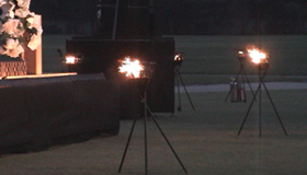 LPガスを使用するもの、灯油を使用するもの、薪を使用するものなどがあります。 LPガスを使用するものと灯油を使用するものの場合は火の粉が出ず、燃料の補給が可能であれば長時間の安定した燃焼が可能です。火の持つ神秘的な性質をかがり火によって、厳かなイメージで表現することが可能です。