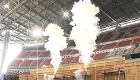鉄管から大量の白煙が瞬時に噴出する効果です。