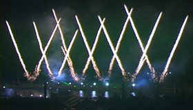 『金鳥』のCMでおなじみの文字仕掛花火です。